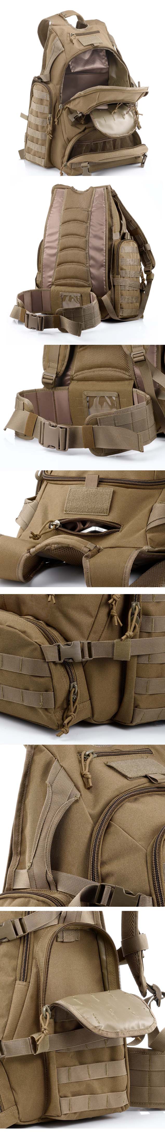 2. wasserdichte Funktion: Rucksackmaterial des Polyester 600D, die Oberfläche hat super wasserdichte Funktion, mit Nylonregenhaube des rucksacks 420D dem dort, Doppelten, das wasserdicht sind, dem passendem Tourismus im Freien und Militärgebrauch sehr.